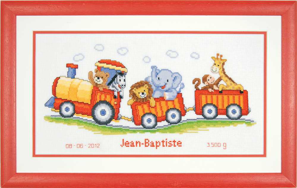 Animal Train Birth Sampler Cross Stitch Kit Vervaco