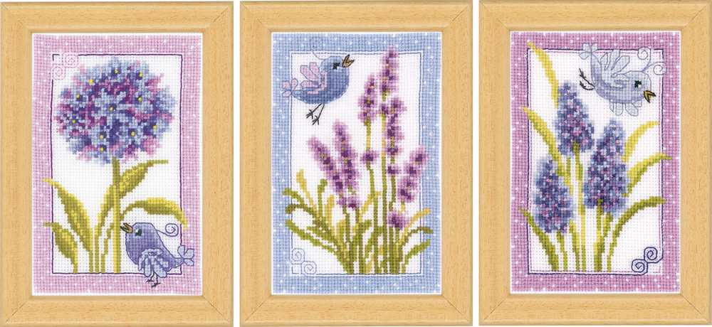 Bird with Flowers Set 3 Cards Cross Stitch Kit Vervaco