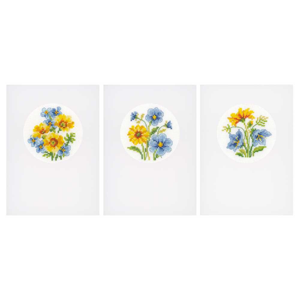 Blue and Yellow Flowers: Set of 3 Cards Cross Stitch Kit by Vervaco
