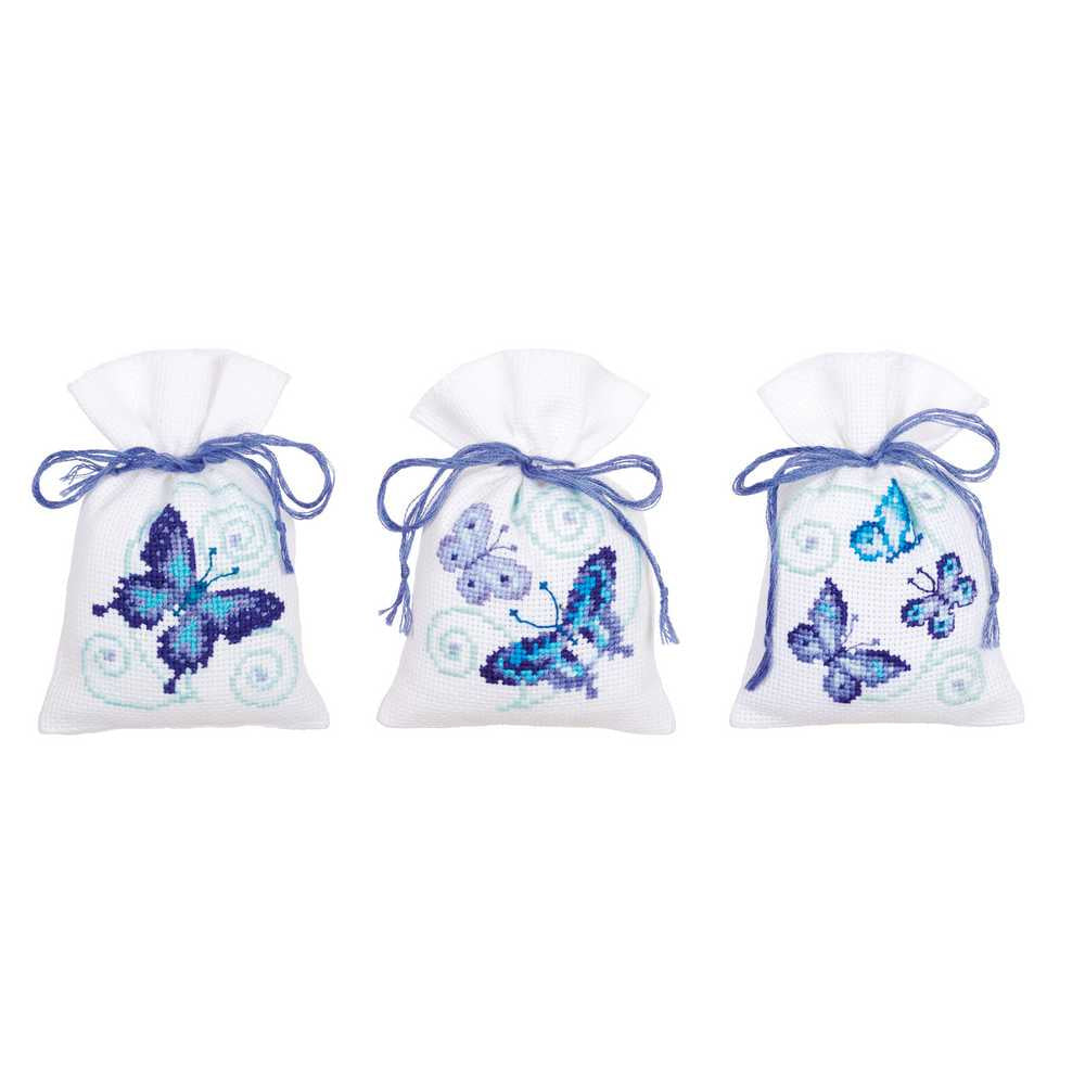 Blue Butterflies: Set of 3 Pot Pourri Bags Cross Stitch Kit Vervaco