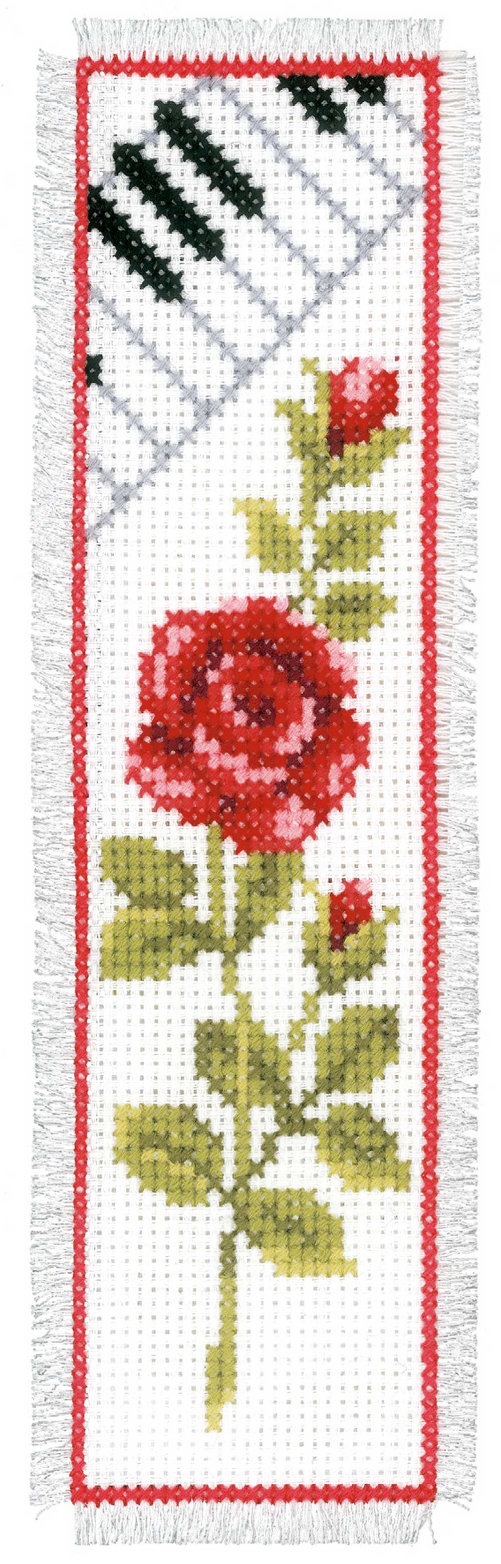 Bookmark: Rose & Piano Cross Stitch Kit by Vervaco