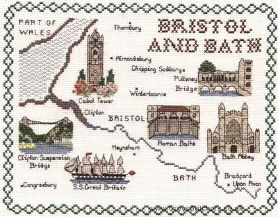 Bristol & Bath Map Cross Stitch Kit - Classic Embroidery