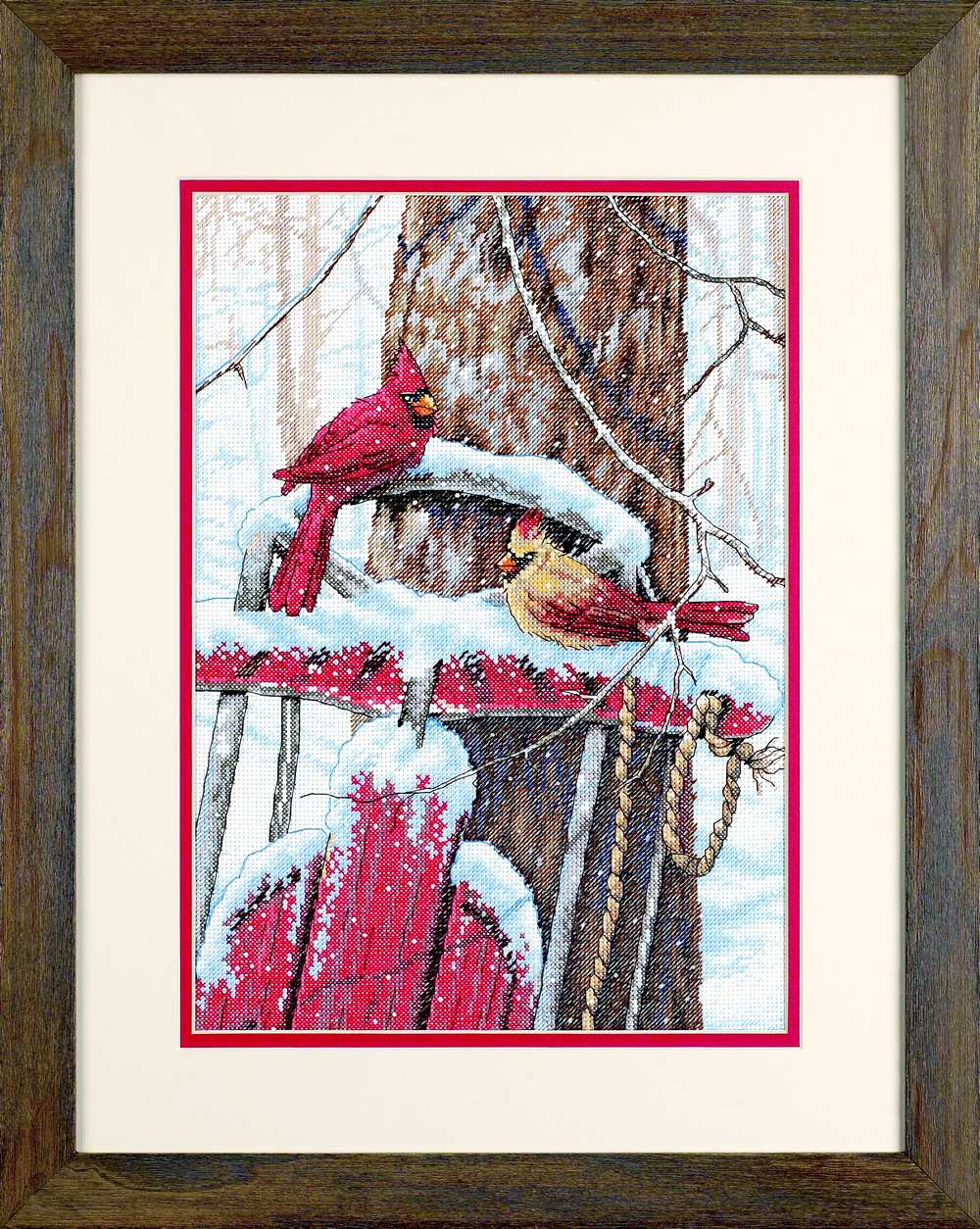 Cardinals on Sled Cross Stitch Kit - Dimensions