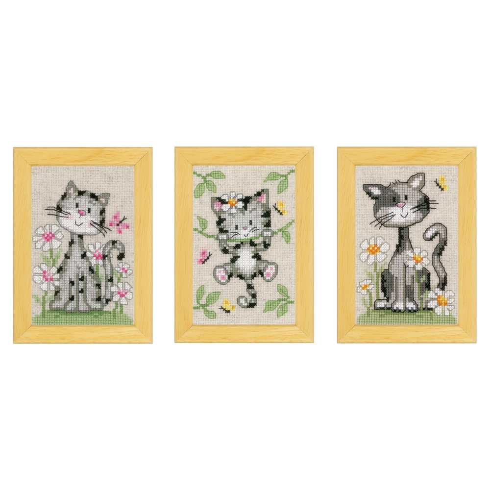 Cats & Flowers: Set of 3 Cross Stitch Kit Vervaco