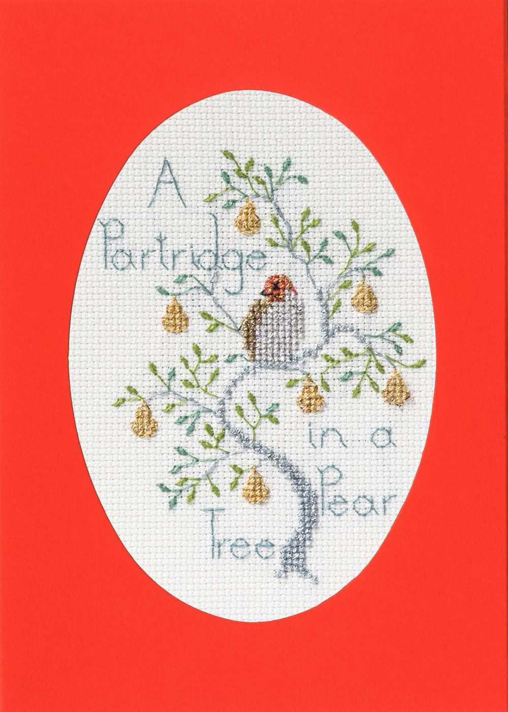 Christmas Card - A Partridge In A Pear Tree Cross Stitch Kit by Derwentwater