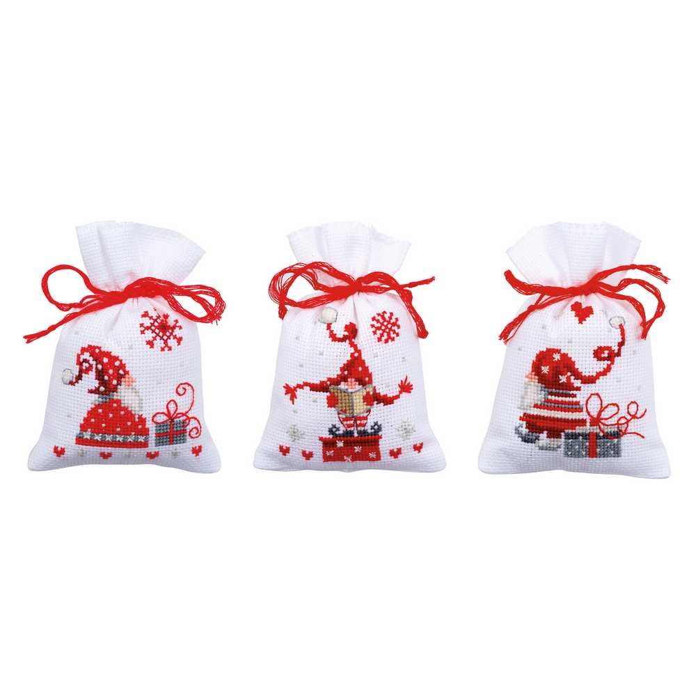 Christmas Gnomes: Set of 3 Pot-Pourri Bags Cross Stitch Kit Vervaco