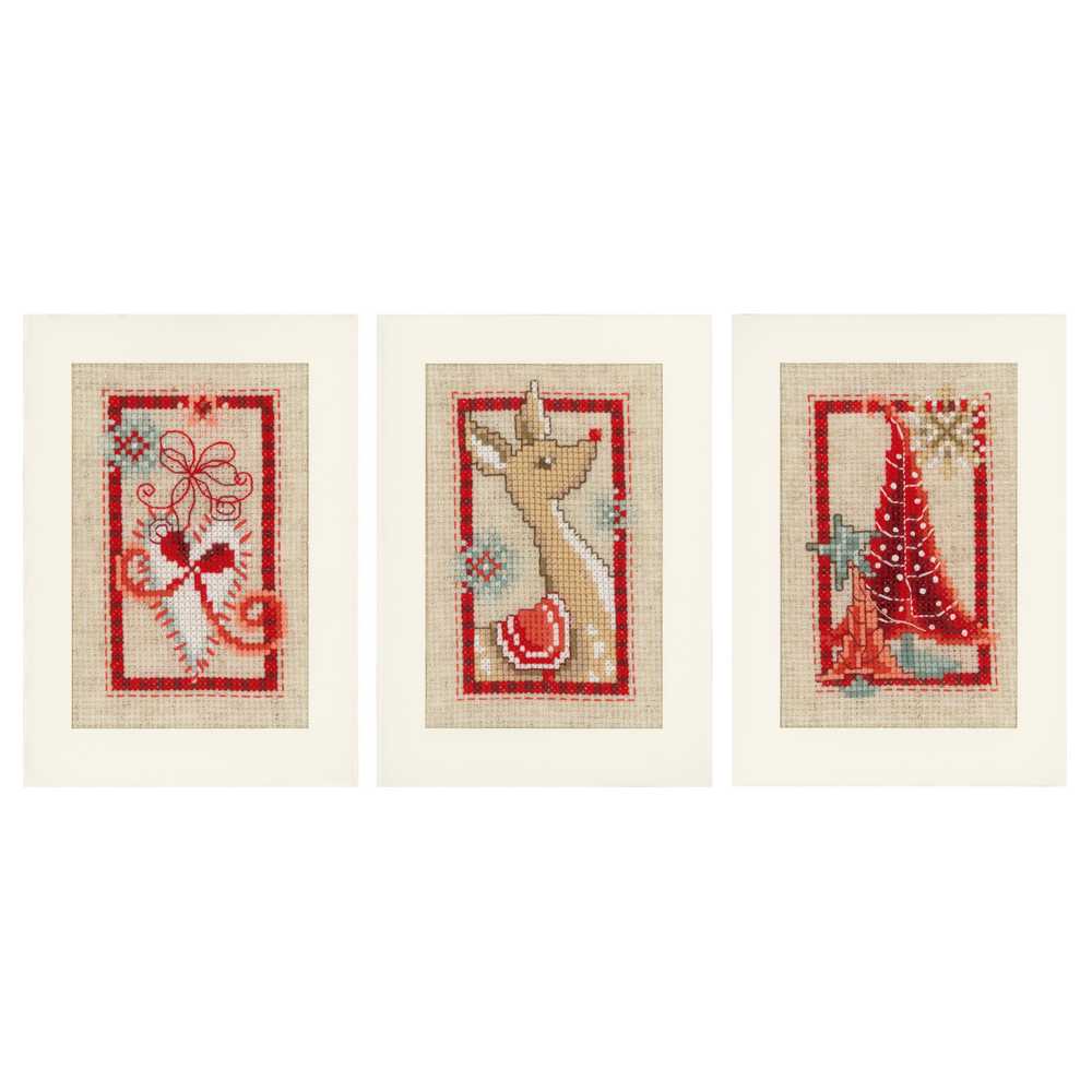 Christmas Symbols: Set of 3 Christmas Cards Cross Stitch Kit Vervaco