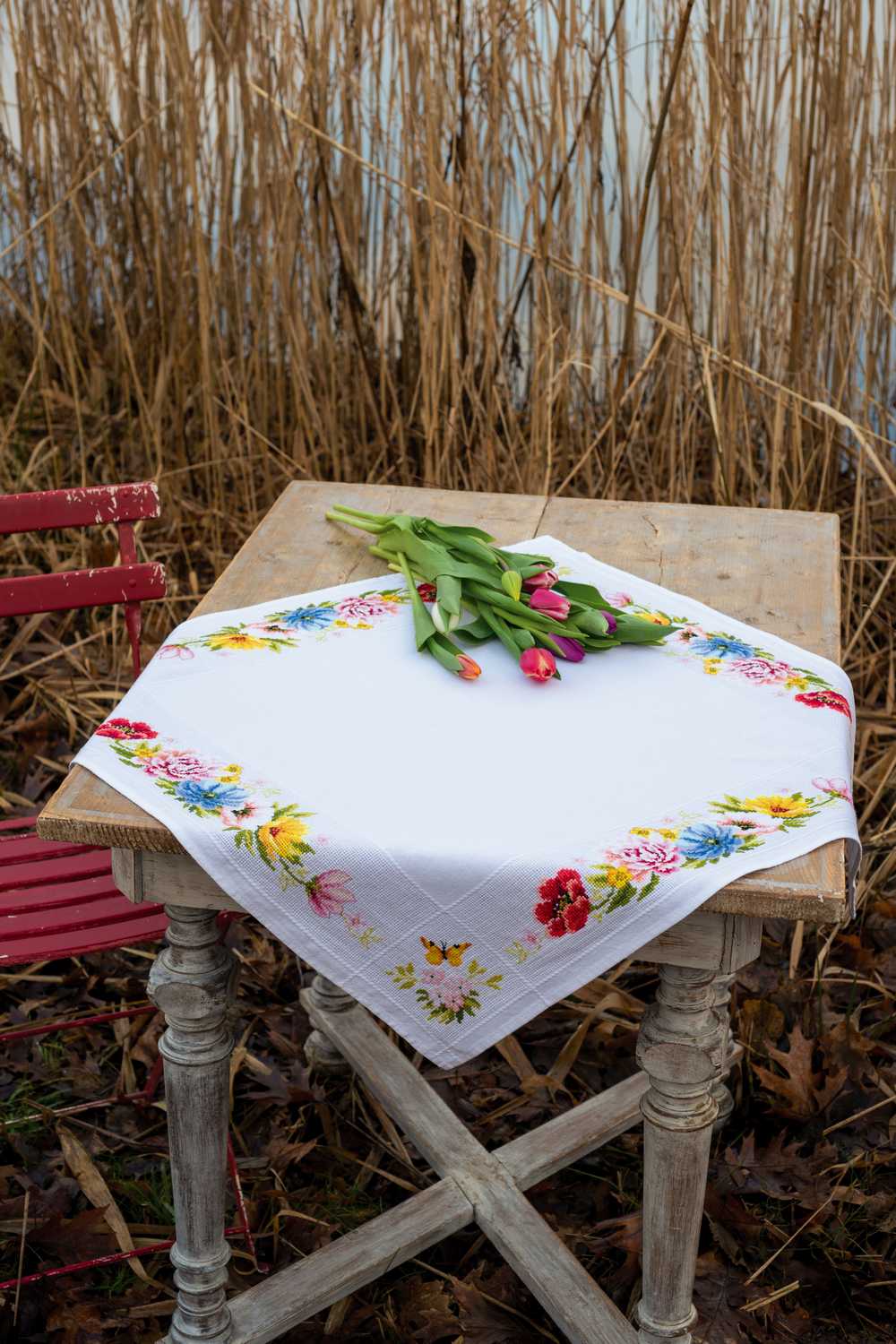 Colourful Flowers Tablecloth Cross Stitch Kit by Vervaco