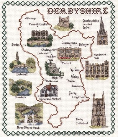 Derbyshire Map Cross Stitch Kit from Classic Embroidery.