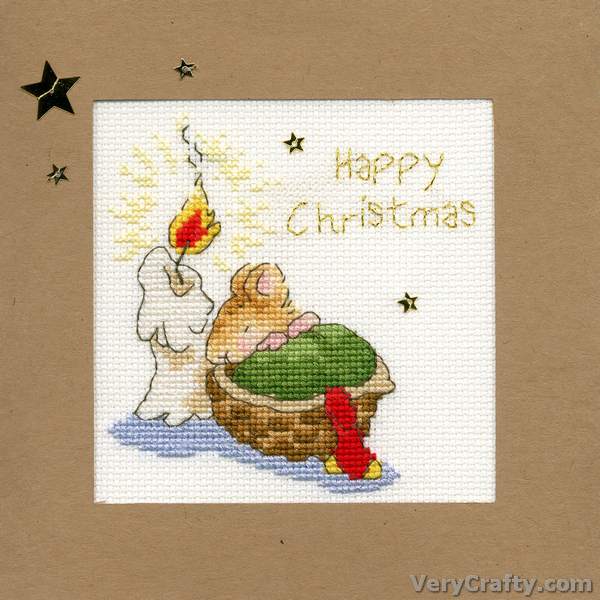 Your kit contains; 16 count white Zweigart Aida, stranded cottons, metallic gold, sparkle, sequins, needle, stitch diagrams and instructions. A brown triple fold card and envelope are also included. Finished size 10 x 10cm. This kit uses full cross stitch and back stitch.