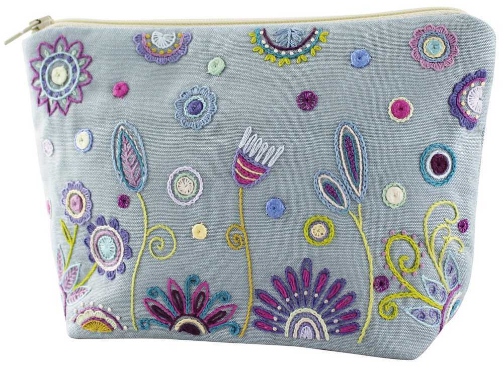 Floral Pouch Blue Embroidery Kit ~ Un Chat dans L'Aiguille