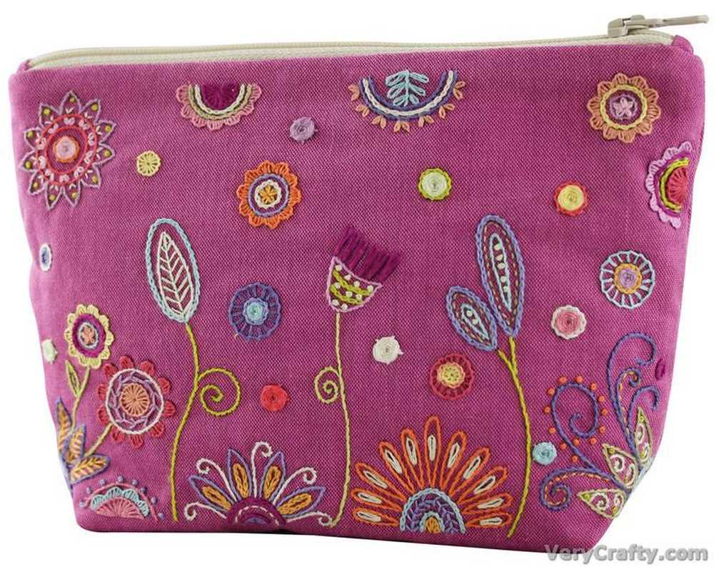 Floral Pouch Pink Embroidery Kit ~ Un Chat dans L'Aiguille