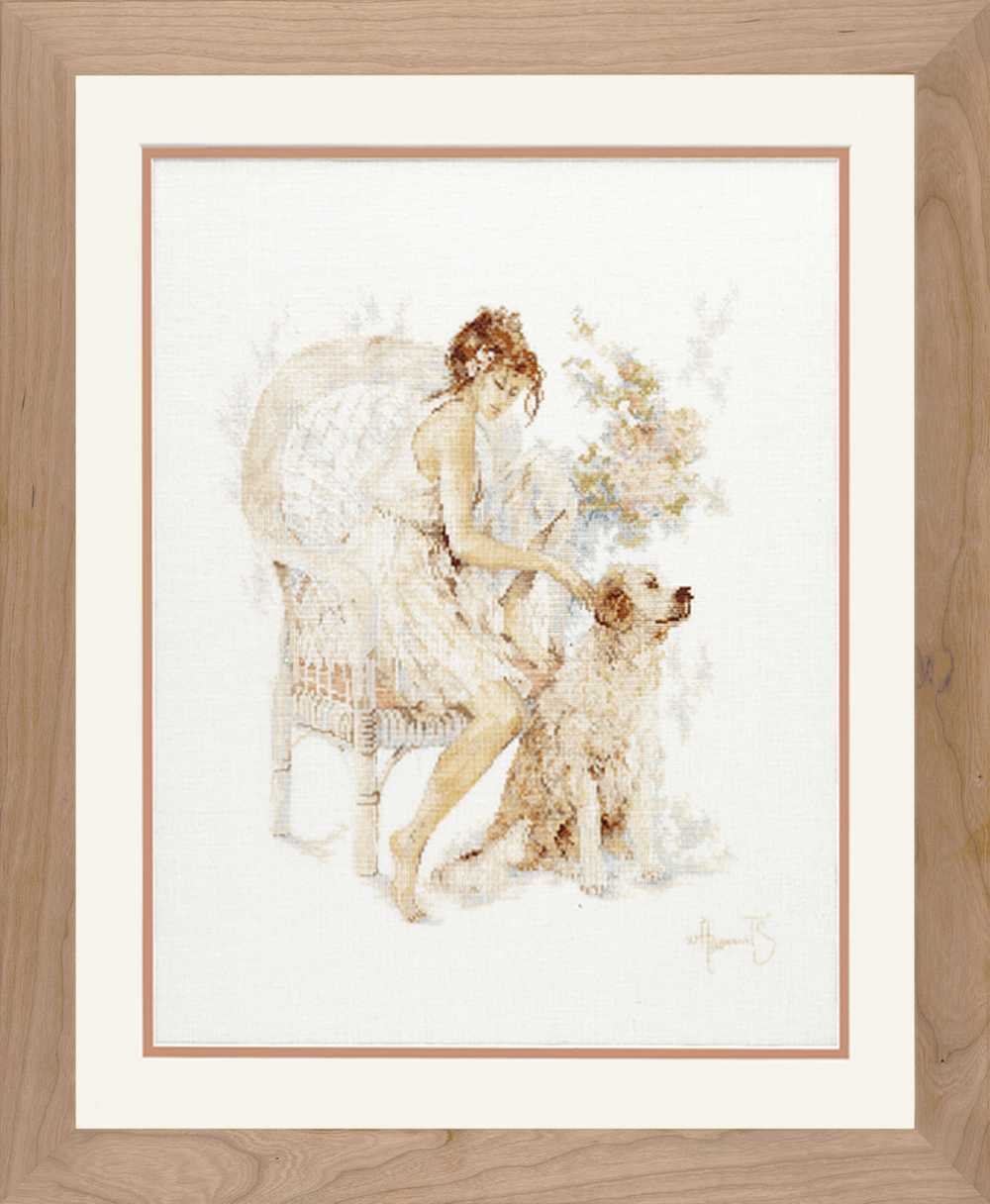Girl in Chair with Dog (Linen) Counted Cross Stitch Kit Lanarte