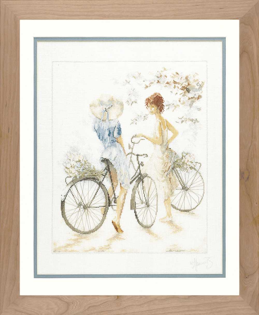 Girls on Bicycle (Linen) Counted Cross Stitch Kit Lanarte