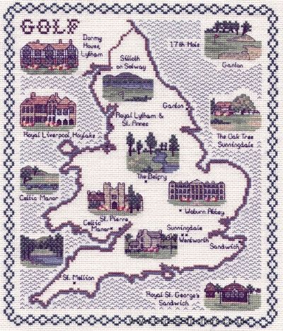 Golf In England & Wales Map Cross Stitch Kit from Classic Embroidery.