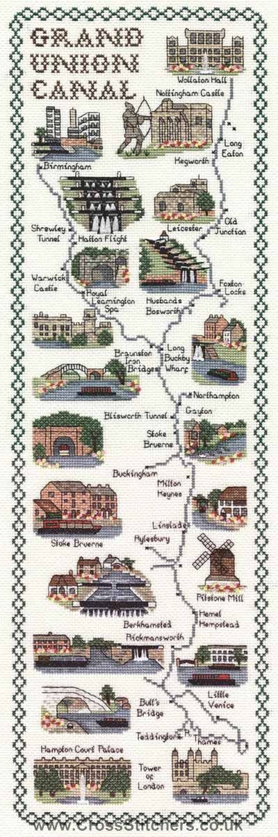 Grand Union Canal Map Cross Stitch Kit from Classic Embroidery.