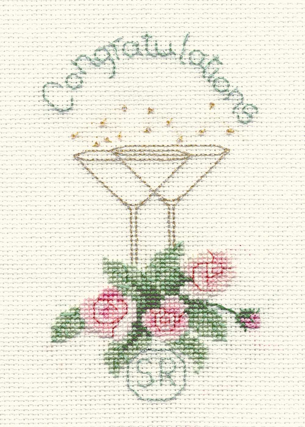 Greeting Card - Rose And Champagne Cross Stitch Kit by Derwentwater Designs