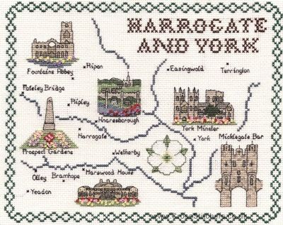 Harrogate & York Map Cross Stitch Kit - Classic Embroidery