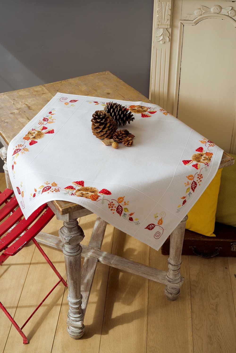 Hedgehog & Mushrooms Tablecloth Cross Stitch Kit Vervaco