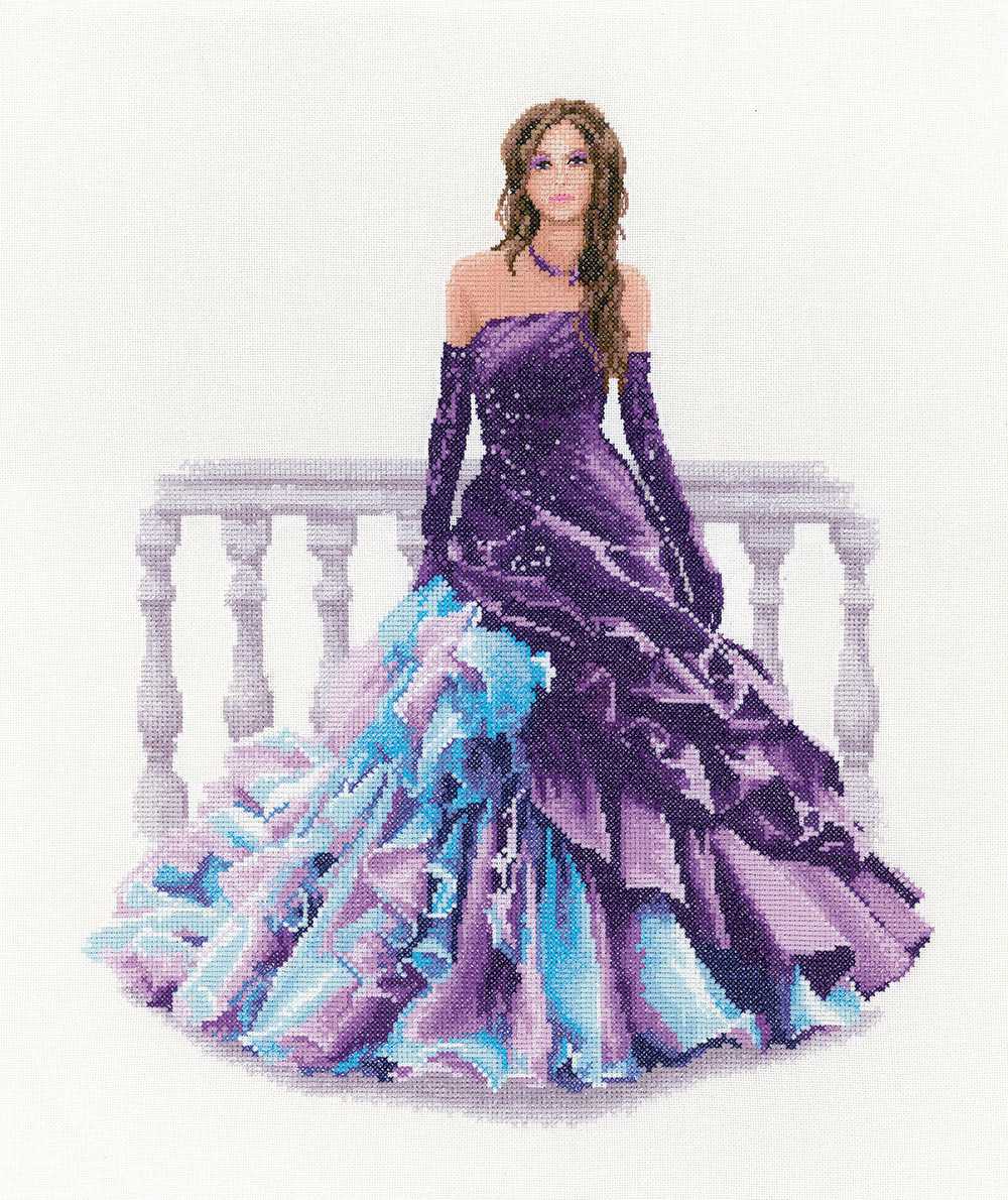 Katrina from the Elegance range of ladies from heritage Crafts. Kit contains chart and instructions, needle, 14 count Aida fabric, and presorted DMC stranded cotton threads on a loaded thread organiser. A design by John Clayton. Design size approximately 31.5 x 38cm