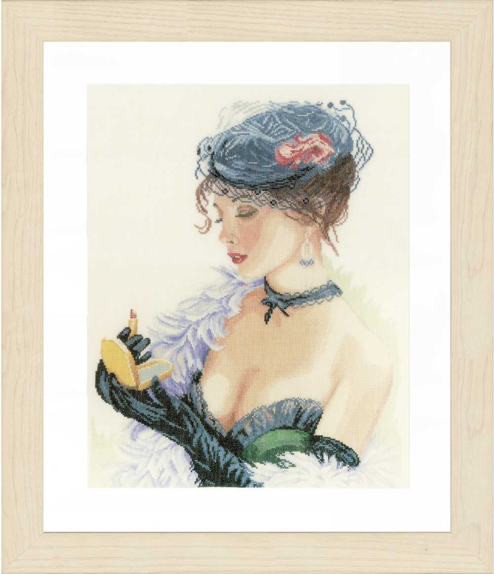 Lady With Lipstick (Linen) Counted Cross Stitch Kit Vervaco