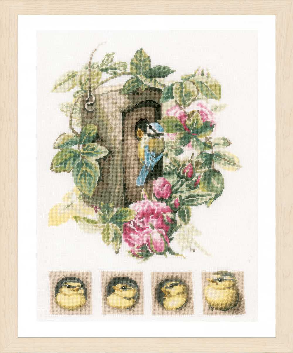 Lanarte Cross Stitch Kit - Birdhouse with Roses (Linen)
