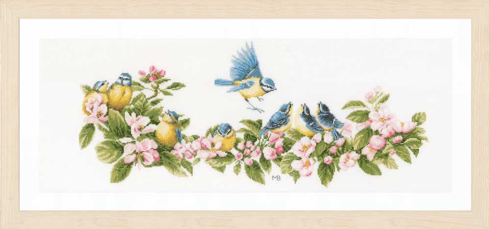 Lanarte Cross Stitch Kit - Blue Tits and Blossoms (Evenweave)
