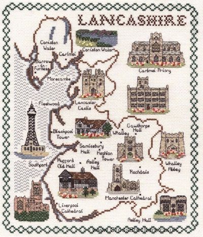 Lancashire Map Cross Stitch Kit from Classic Embroidery.
