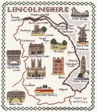 Lincolnshire County Map Cross Stitch Kit from Classic Embroidery.