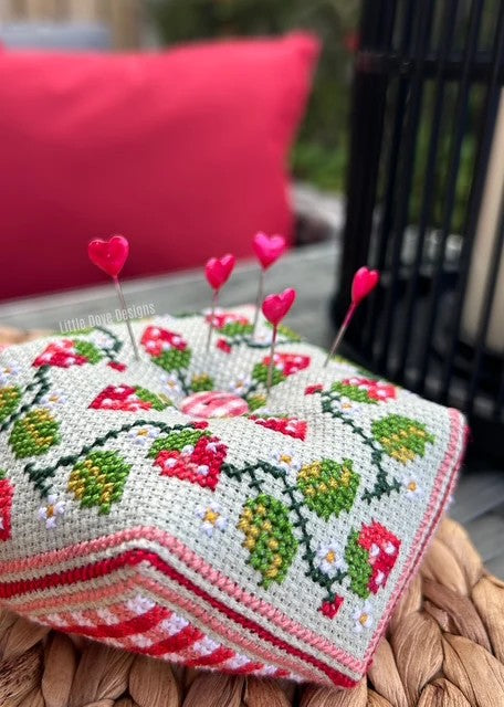 Little Dove Designs Cross Stitch Biscornu Kit - Strawberry Fayre