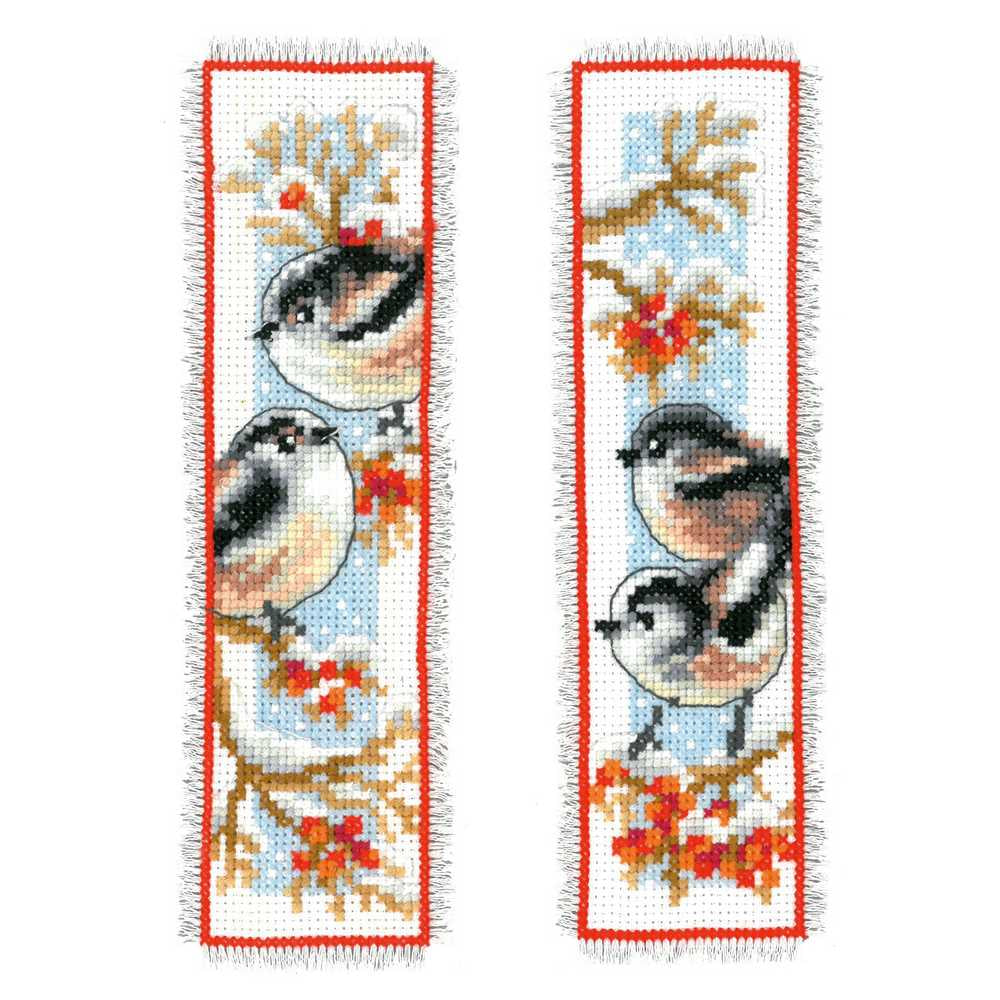 Long-Tailed Tits & Red Berries: Set of 2 Bookmark Cross Stitch Kit Vervaco