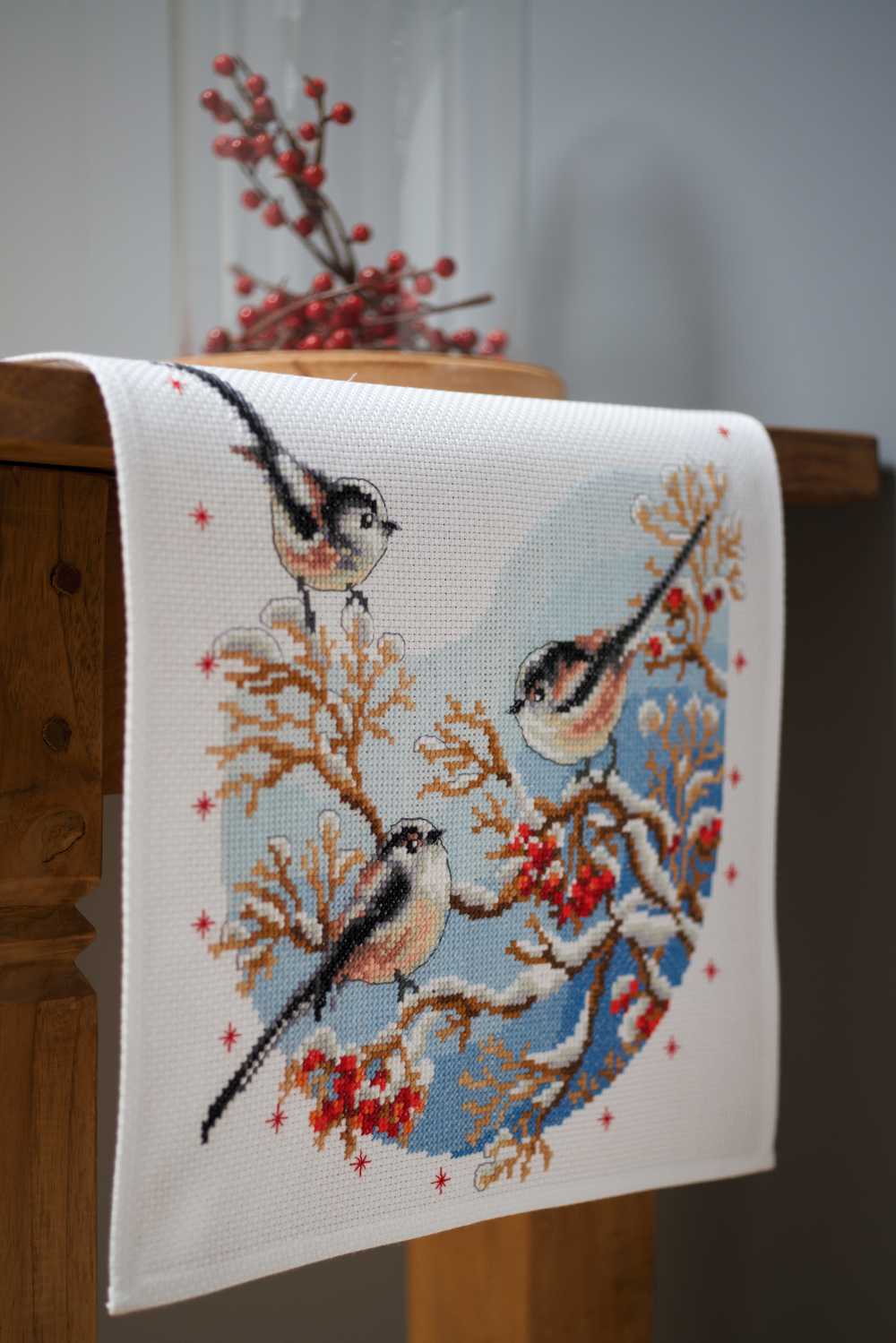 Long-Tailed Tits & Red Berries Table Runner Cross Stitch Kit Vervaco
