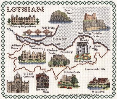 Lothian Map Cross Stitch Kit - Classic Embroidery