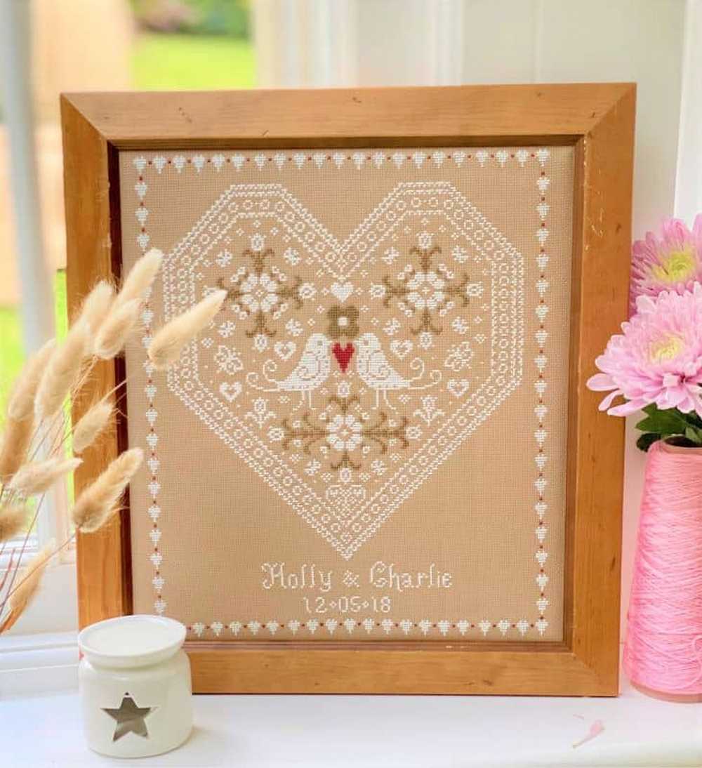 Love Birds Wedding Sampler Cross Stitch Kit Historical Sampler Co