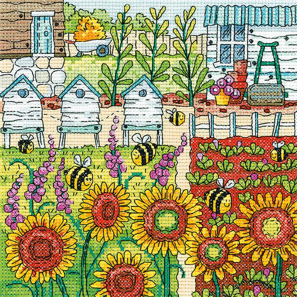 Kit contains chart and instructions, needle, 14 count Aida fabric, and presorted DMC stranded cotton threads on a loaded thread organiser. A design by Karen Carter. Design size approximately 16,5 x 16.5cm