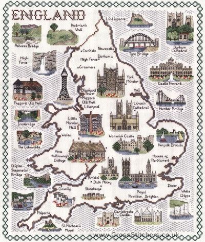 Map Of England Cross Stitch Kit - Classic Embroidery