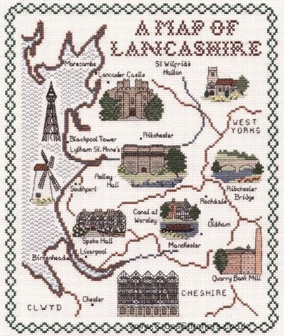 Map of Lancashire Cross Stitch Kit - Classic Embroidery