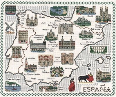 Map Of Spain Cross Stitch Kit from Classic Embroidery.