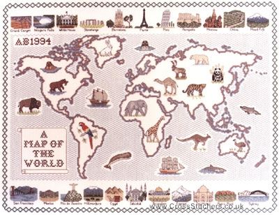 Map of the World Cross Stitch Kit from Classic Embroidery.