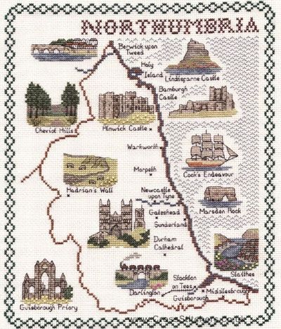 Northumbria Map Cross Stitch Kit from Classic Embroidery.