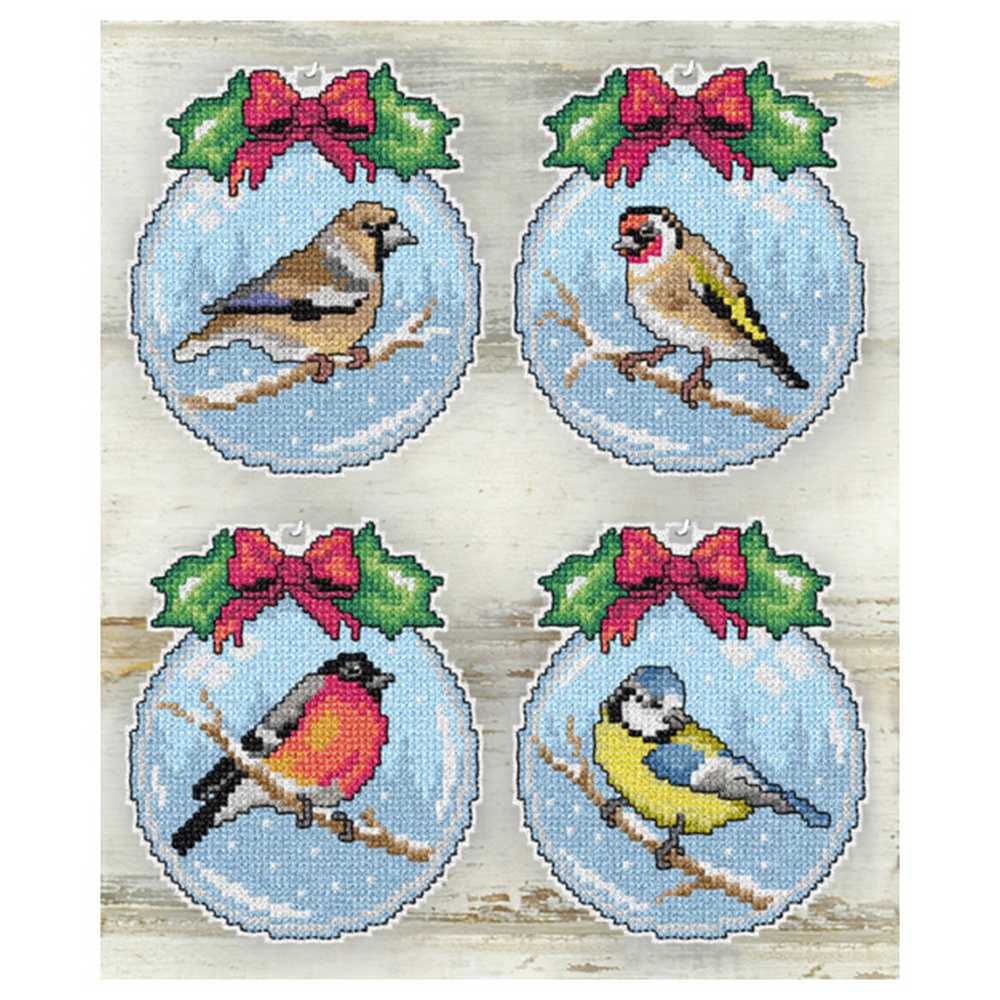 Set of 4 counted cross stitch decorations. Kit includes: pre-sorted, 6-ply, mouliné stranded cotton; 4 plastic canvas pieces; needle; chart and instructions in multiple languages (GB, NL, PL, S, F, RUS, N, FIN, DK, H, D, CZ, I). Approximate finished size: (w/h) 9.5 x 11.5cm or 3.5 x 4.5in. Difficulty level: medium. Handwash only.