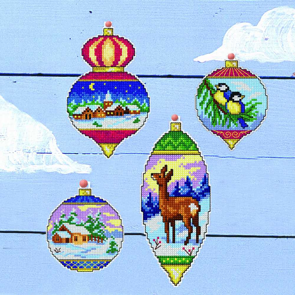 Orchidea Counted Cross Stitch Kit- Christmas Baubles- Set of 4 ~ ORC.7673