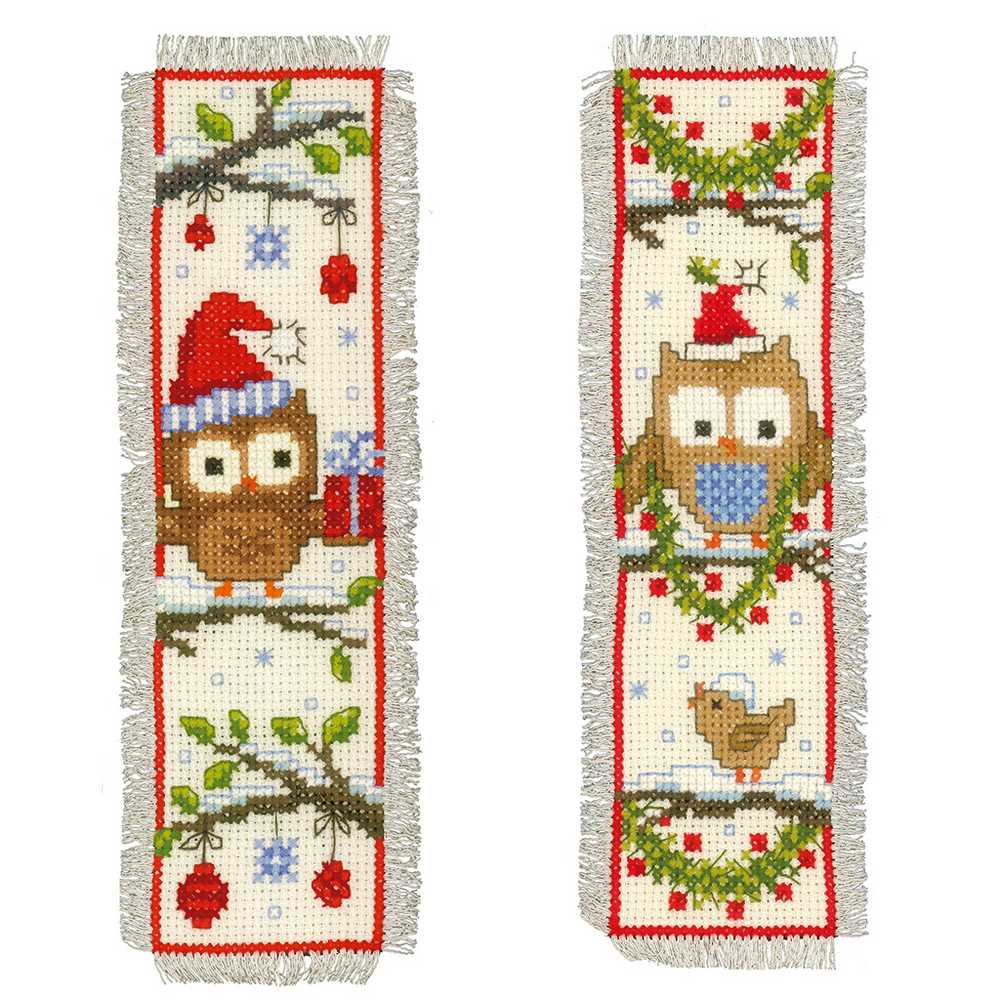 Owls In Santa Hats: Set of 2 Bookmarks Cross Stitch Vervaco