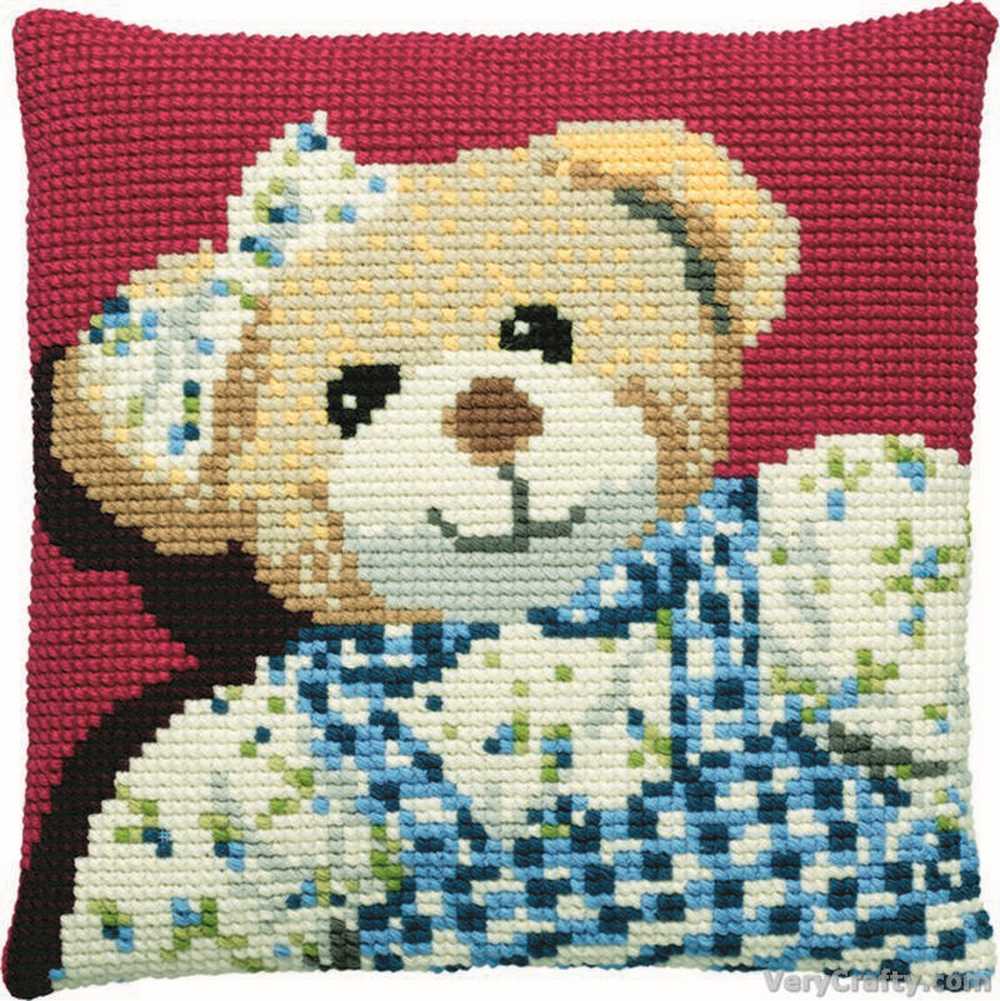 Pako Kit Girl Teddy Cross Stitch Cushion Kit