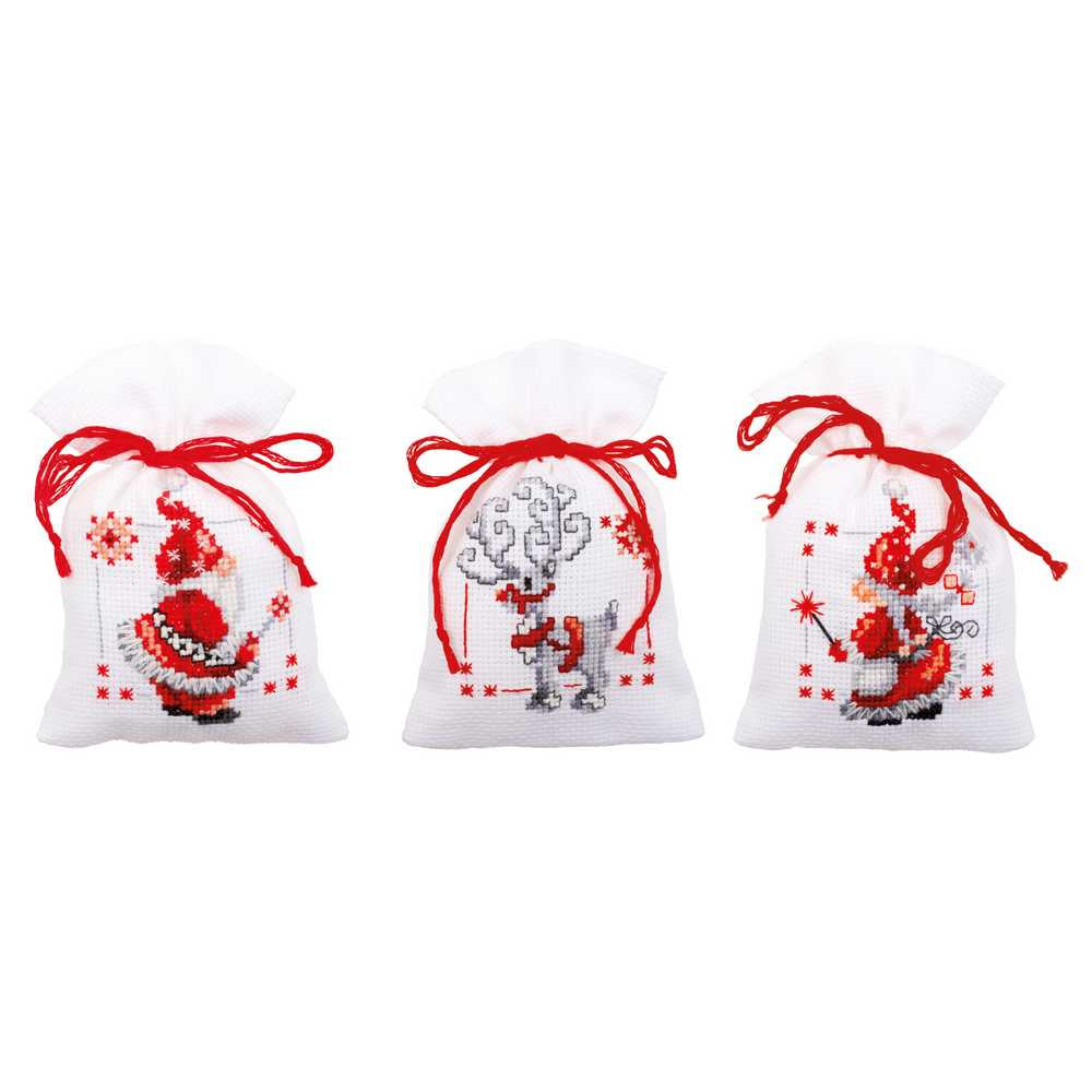 PChristmas Elves: Set of 3 Pot Pourri Bag Cross Stitch Kit by Vervaco