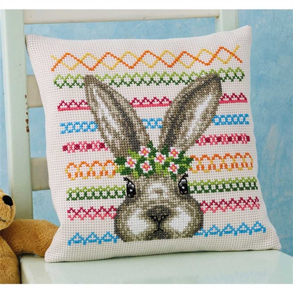 This counted cross stitch cushion design from Permin contains 8 count ivory aida fabric - including for backing, DMC pearl cottons, needle, chart and instructions.