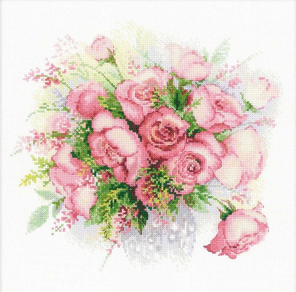 The kit contains 14 count white Zweigart aida fabric, stranded cottons, needle, chart and instructions.