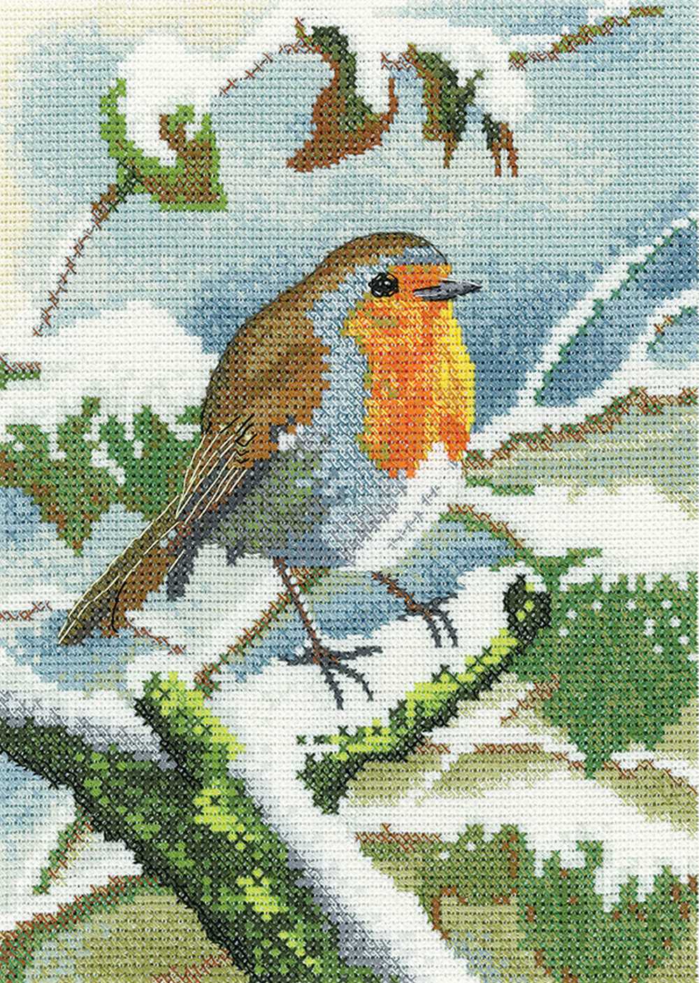 Robin in Winter Cross Stitch Kit Heritage Crafts