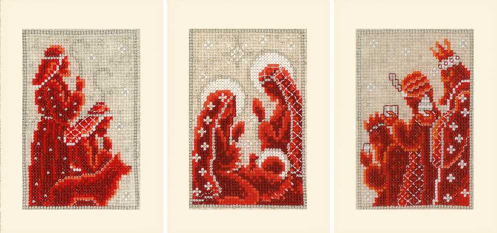 Set 3 Bible Story Christmas Cards Cross Stitch Kit - Vervaco