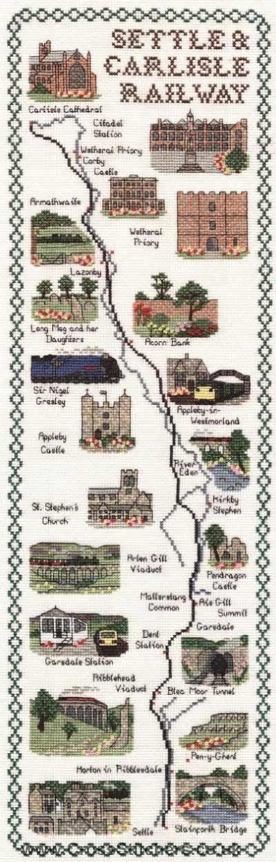 Settle & Carlisle Railway Map Cross Stitch Kit - Classic Embroidery